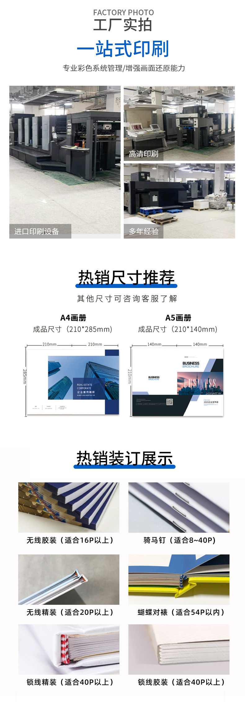 裝訂工藝:騎馬釘、無(wú)線膠裝、鎖線膠裝、蝴蝶裝、鎖線精裝、線圈等